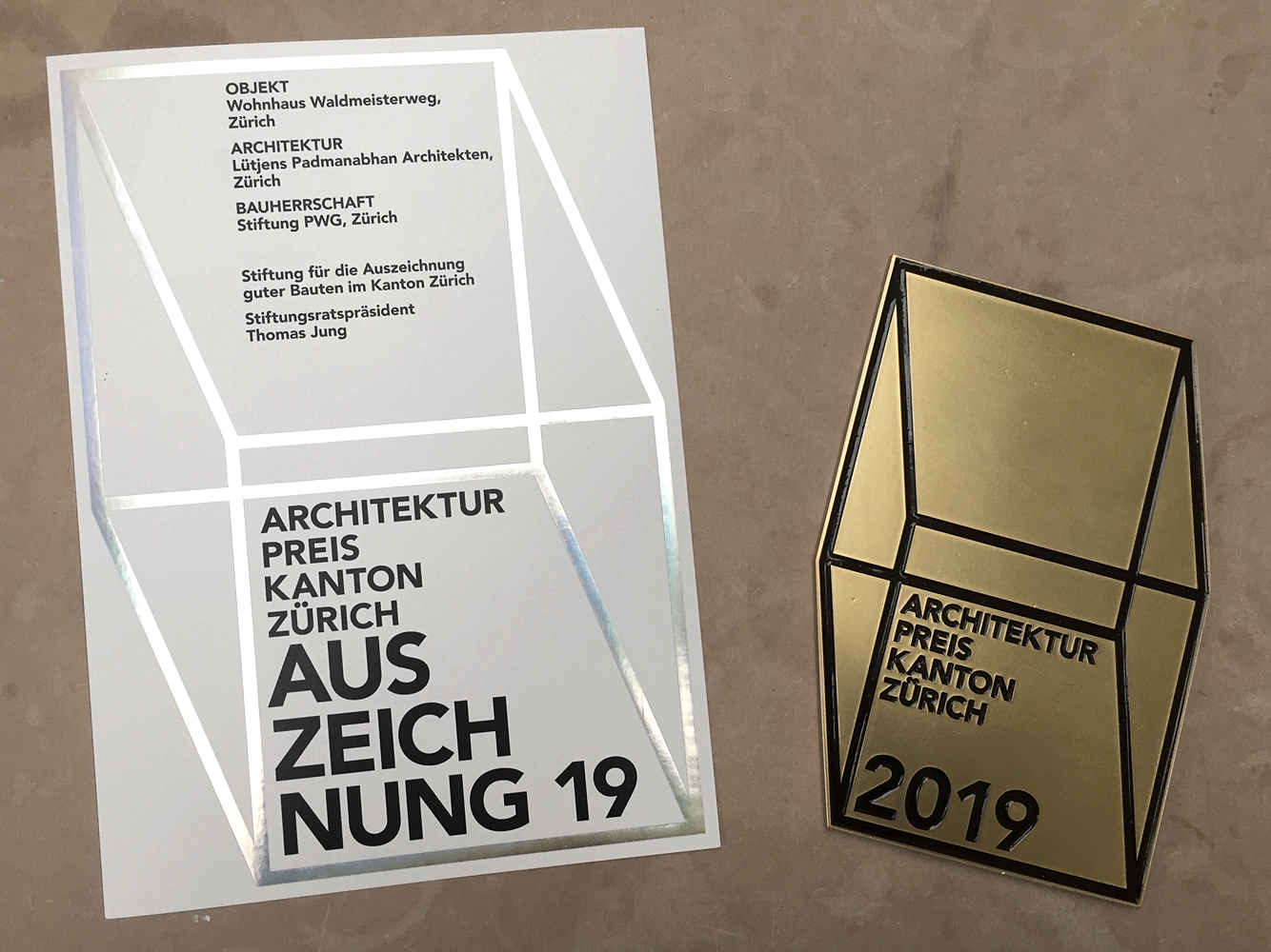 Die Stiftung für die Auszeichnung guter Bauten im Kanton Zürich verleiht der Lütjens Padmanabhan Architekten und der Stiftung PWG den Architekturpreis 2019 für das Haus am Waldmeisterweg . Mit der Auszeichnung werden Bauherrschaften und Architekten/-innen bedacht, die sich in vorbildlicher Weise für die Realisierung qualitätsvoller Architektur engagiert haben und deren eingereichte Objekte städtebauliche, freiräumliche und architektonische Qualitäten zum Thema «KOLLABORATIV!?» vorzeigen konnten.