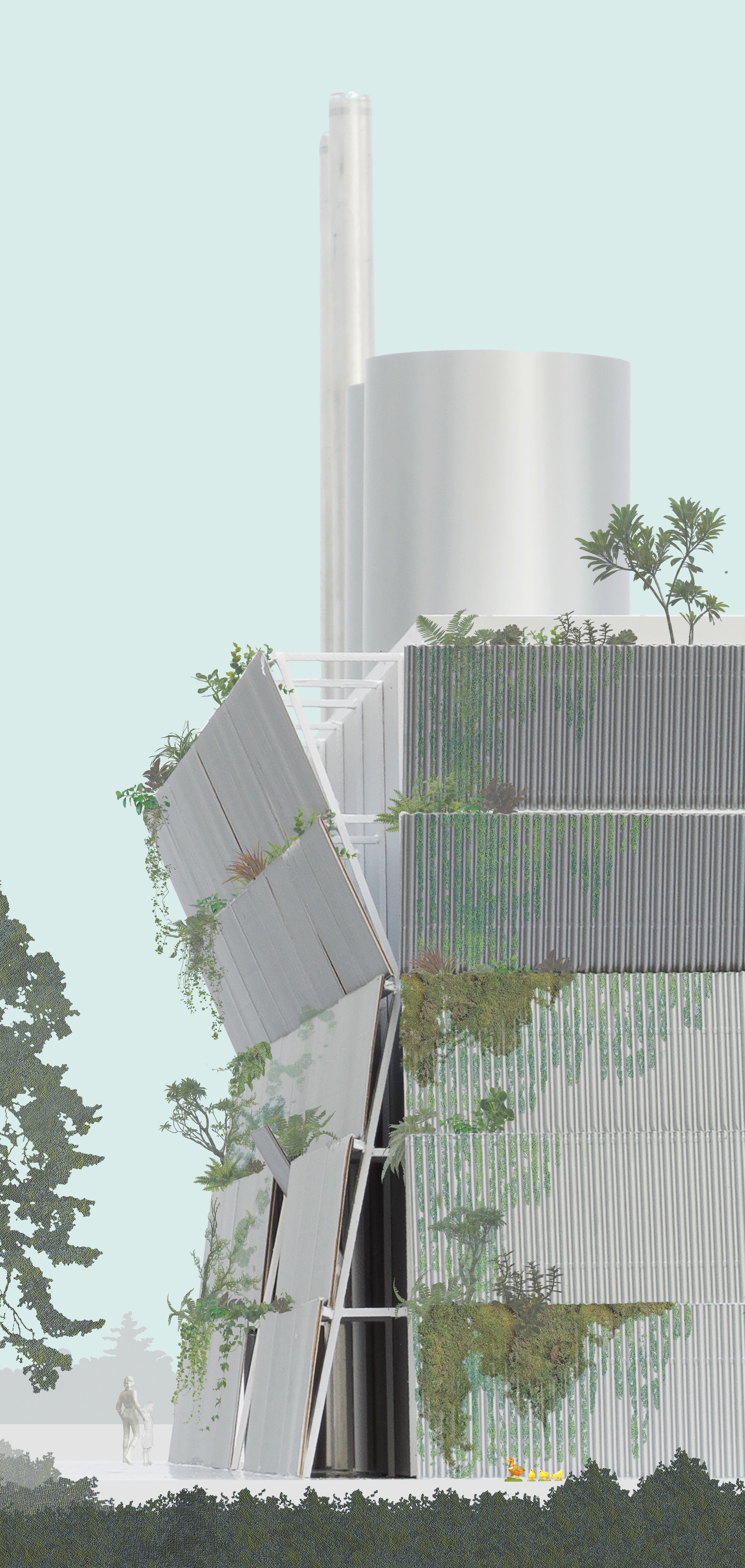 "The form of the building opens upward with a powerful geometric gesture, which seems to start from the soil and reach for the sky. It is a figure that connects earth and atmosphere, wavering between artifice and nature, fragility and force." Massimo Curzi über die Energiezentrale Unterfeld in der Juli-August 2025 Ausgabe von Casabella.