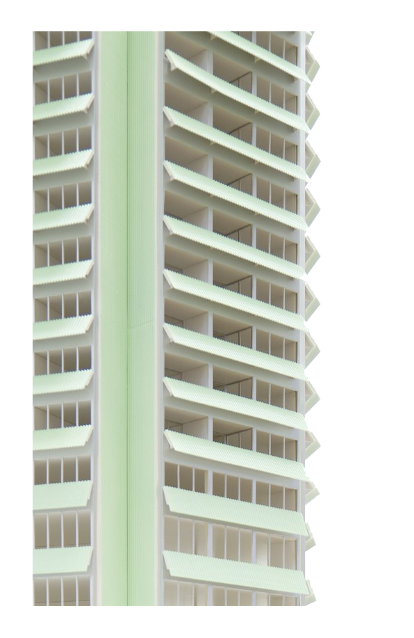 Together with the Rosenweg high-rise, the project creates an urban double figure, promoting a sense of identity for the town center of Effretikon. The urban space between the two vertical landmarks is formulated by means of two horizontally articulated architectural volumes. They each have verdant rooftop gardens, thus becoming part of the existing mosaic-like layout of the numerous surrounding garden and green areas.