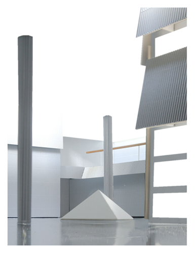 In terms of exhibition staging, the monks’ cells act as skylights, with the descent, via the steps or lift, affording the visitors a spatial experience. The stairwell is formed as a double-helix, serving both the visitors and staff.