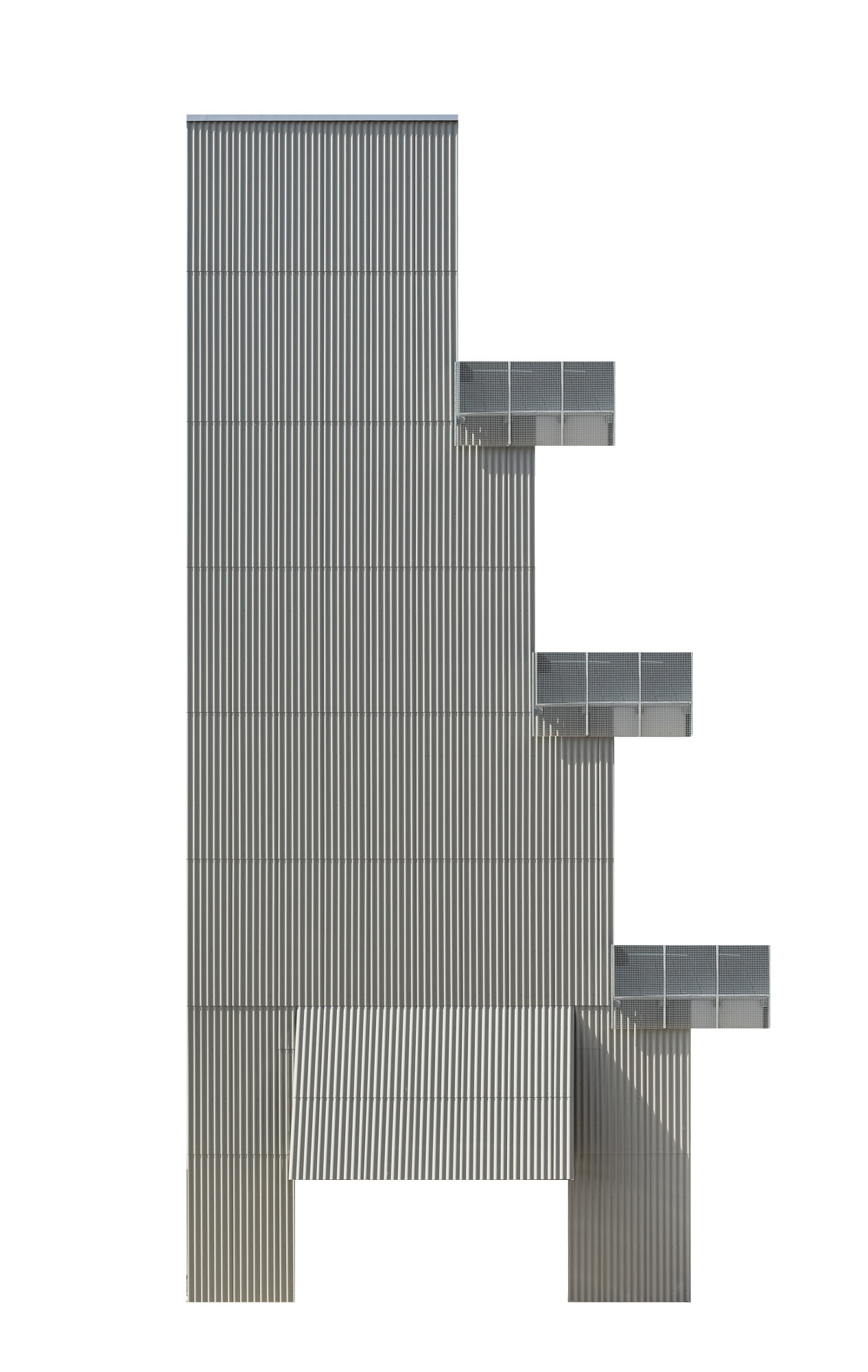 Der Längsbau ist als Pilotprojekt zum Thema "Suffizienz" konzipiert. Das Wohnhaus wird als urbanes Terrassenhaus ausgebildet. Seine prägnante Gebäudeform verbindet sich mit dem angrenzenden Wohnturm und dem Corner-Shop zu einem einprägsamen Ensemble von identitätsstiftender Kraft.