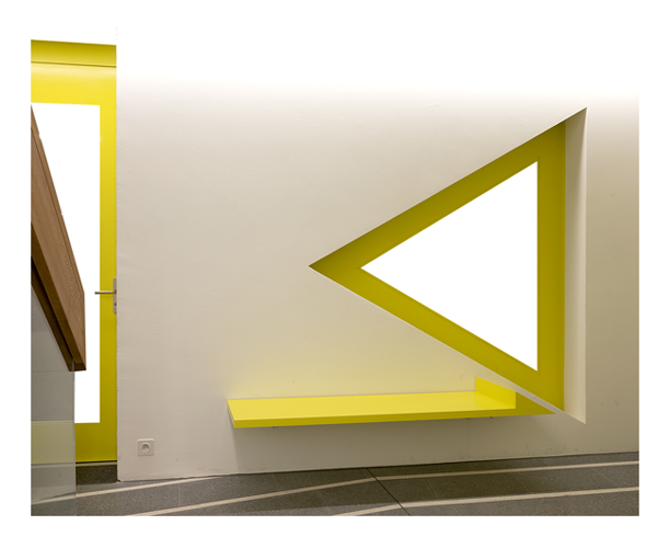 The terraced house is located near the forest overlooking the countryside and embraces the modern, anti-romantic character of this building type. Its eight apartments have spacious terraces with sweeping views of rural Alsace across the French border. In contrast to the pastoral setting, the form of the building is highly rational and the result of a relentless process of maximising the rentable space. As a result, both plans and facade motifs are serial and non-compositional in character. The plans consist of a series of parallel lines that are inscribed into the slightly distorted building shape.